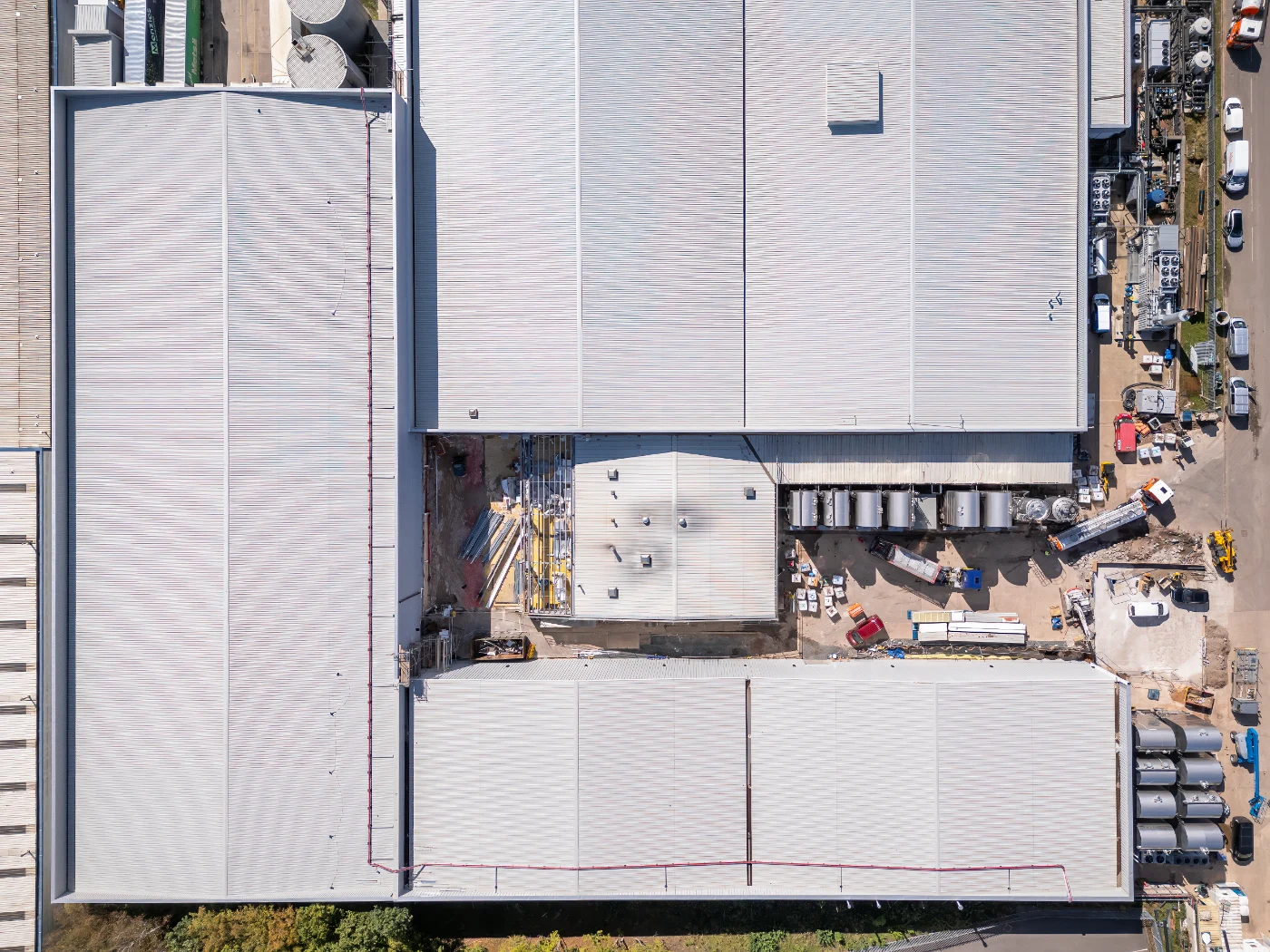 Crafted by Just ChillMSB is delivering a major two-phase 50,000 sq.ft. factory extension for Magna Specialist Confectioners, one of the UK’s leading co-manufacturers for global chocolate brands. The turnkey project includes a large underground storm water attenuation tank supporting fourteen 70-tonne chocolate storage tanks and a roof overclad of the existing 10,500m² facility to enhance temperature control and energy efficiency.